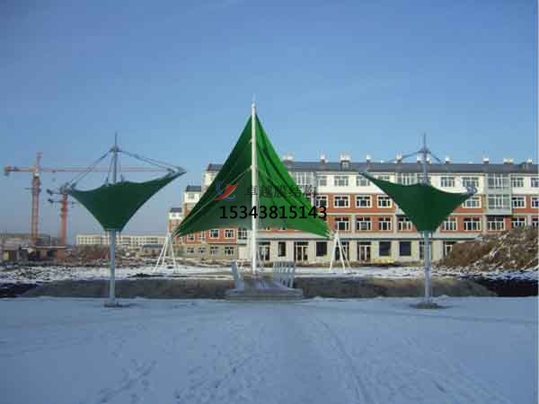 Teflon材料強度高、彈性模量大、自潔、耐久耐火等性能好,但它價格較貴,不易折疊,對膜結(jié)構(gòu)車棚裁剪制作精度要求較高,壽命一般在30年以上,適用于永久建筑。