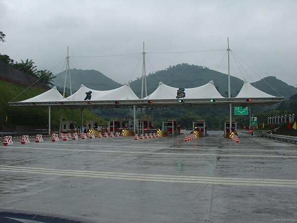 玉林卓越膜結構工程公司是專業(yè)從事收費站雨棚,高速高速公路膜結構、高速服務區(qū)充電站配套雨棚,高速公路服務區(qū)景觀遮陽棚,高速公路加油站罩棚的專業(yè)廠家,擁有一批國內更早從事膜結構行業(yè)的工程技術人才,并與玉林地區(qū)各著名設計院、大學都有緊密合作,使用國際更先進的膜結構建筑設計軟件、荷載分析軟件、找型裁剪軟件、結構計算軟件,充分保證了玉林卓越公司在中國膜結構領域技術領先性。下面給各位介紹一下我公司在玉林及周邊縣市完工的一批高速公路收費站膜結構工程案例。